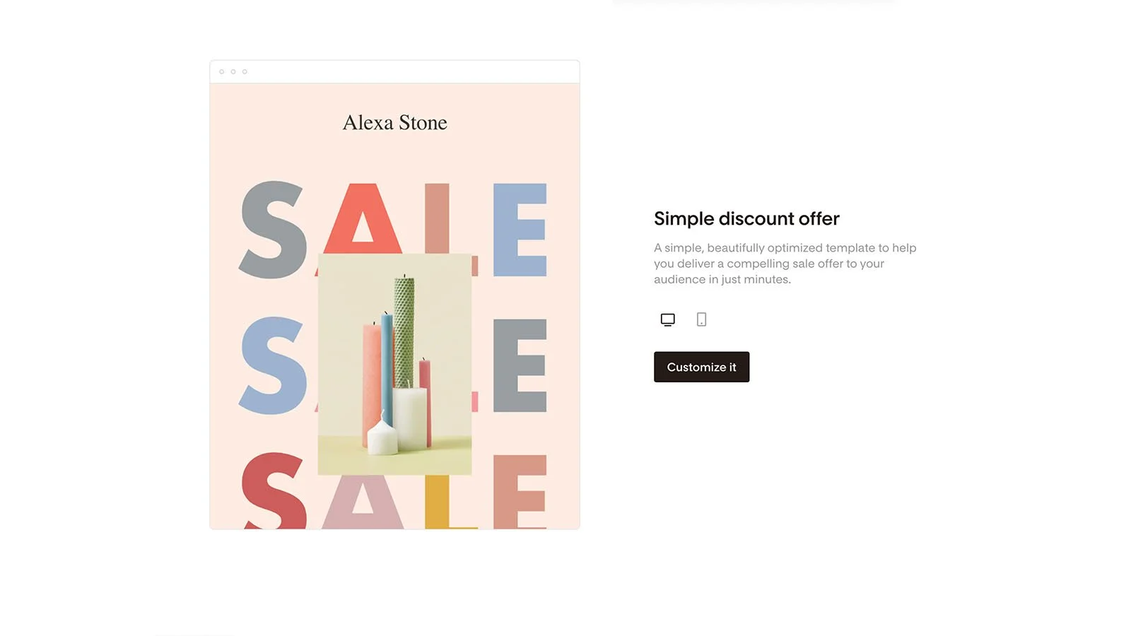 Al comenzar a diseñar tu primer email en Flodesk, lo primero que verás es una amplia selección de plantillas de diseño y la opción de comenzar a diseñar desde cero. Las plantillas están sorprendentemente bien diseñadas y refrescante visualmente (comparado con otras plataformas de mercadeo por email que no mencionaremos…). Puedes hacer clic en una plantilla para tener una mejor idea de cómo se vería en diferentes dispositivos (computadora y móvil).
