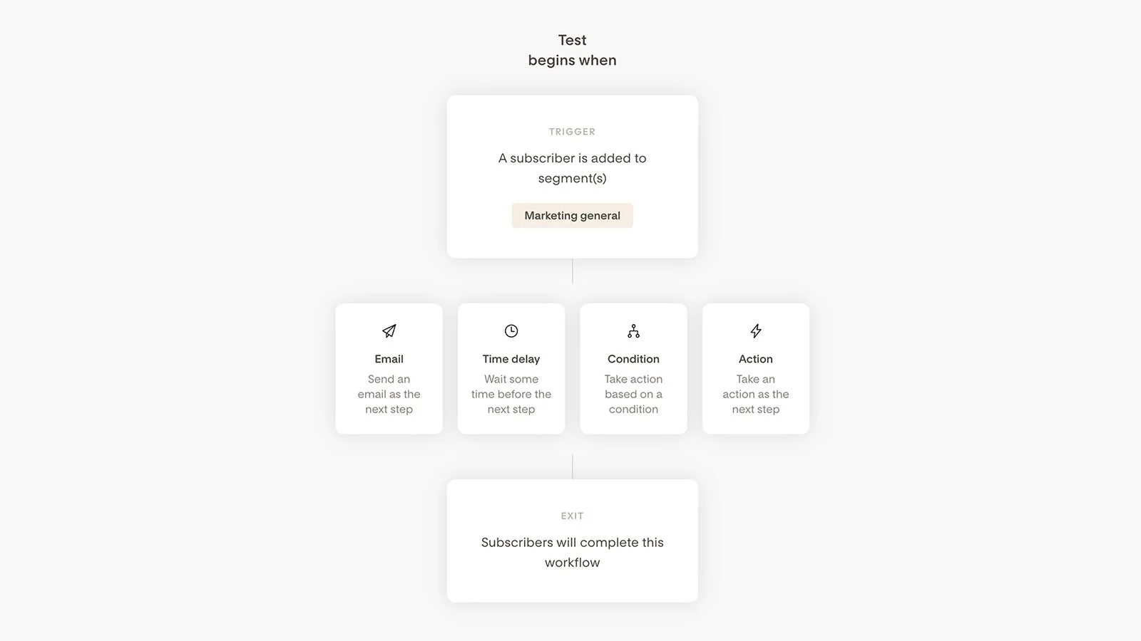 Lo primero que querrás hacer al crear un workflow es establecer un trigger, o activador – es lo que pondrá a correr tu workflow. Actualmente, solo puedes activar un workflow cuando se añade un suscriptor a un segmento o a varios, según los que selecciones.