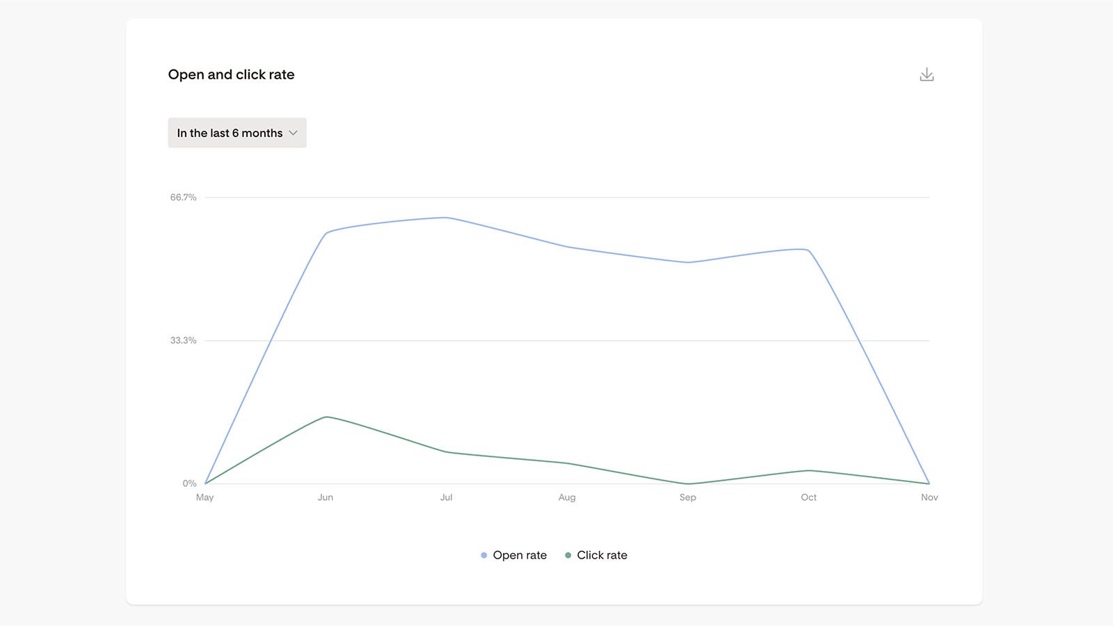 Puede pasar tu mouse sobre un email desde la página de Emails y hacer clic en el botón de "View results". Esto te dará un análisis más completo del desempeño de un email enviado.